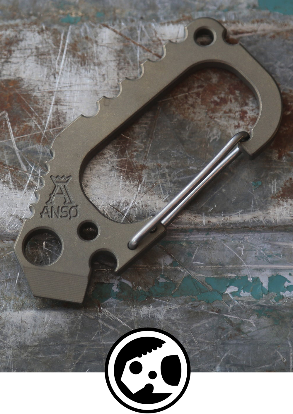 The spring is custom made from stainless steel. Weight is approx 1.3 oz. Beadblasted, anodized and stonewashed.