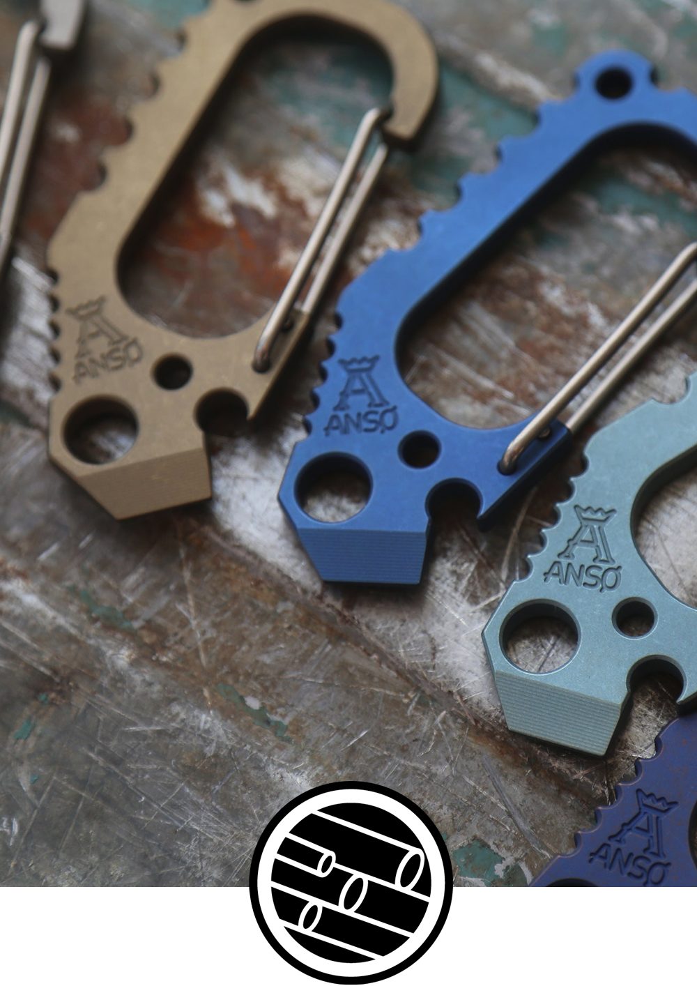 All carabiners are engraved with the Ansø of Denmark crowned A.