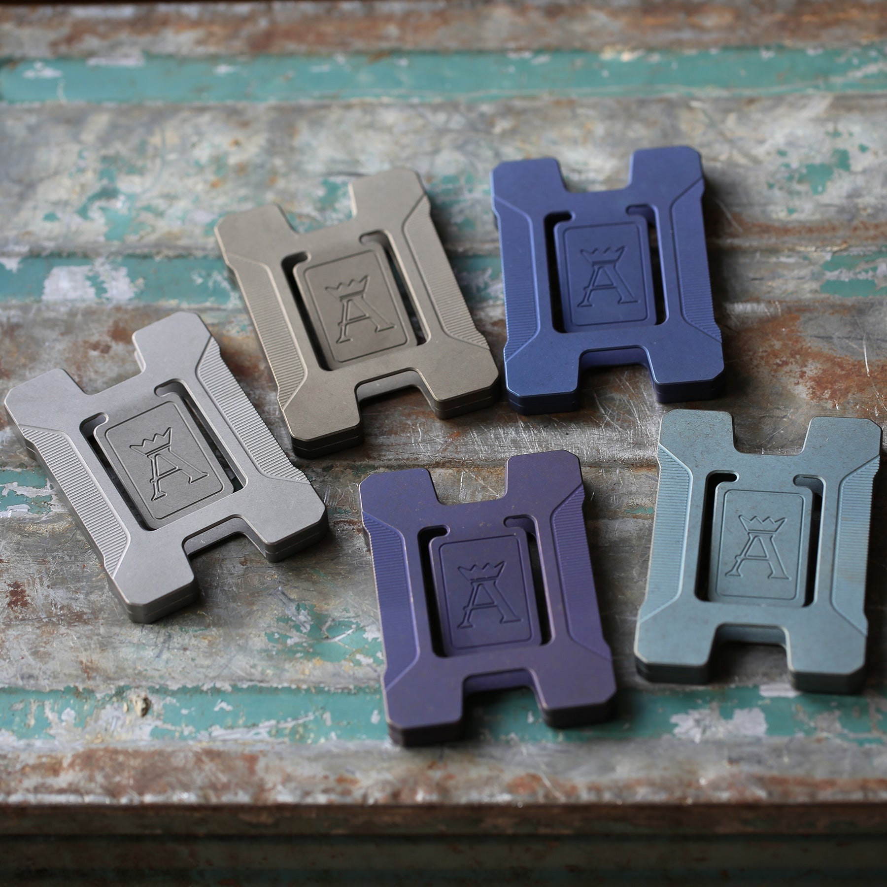 The Matrix is a small pocket sized credit card holder that has the ability to hold as few as one or as many as 6 cards using a top-facing tensioned titanium spring. (also works great for business cards)