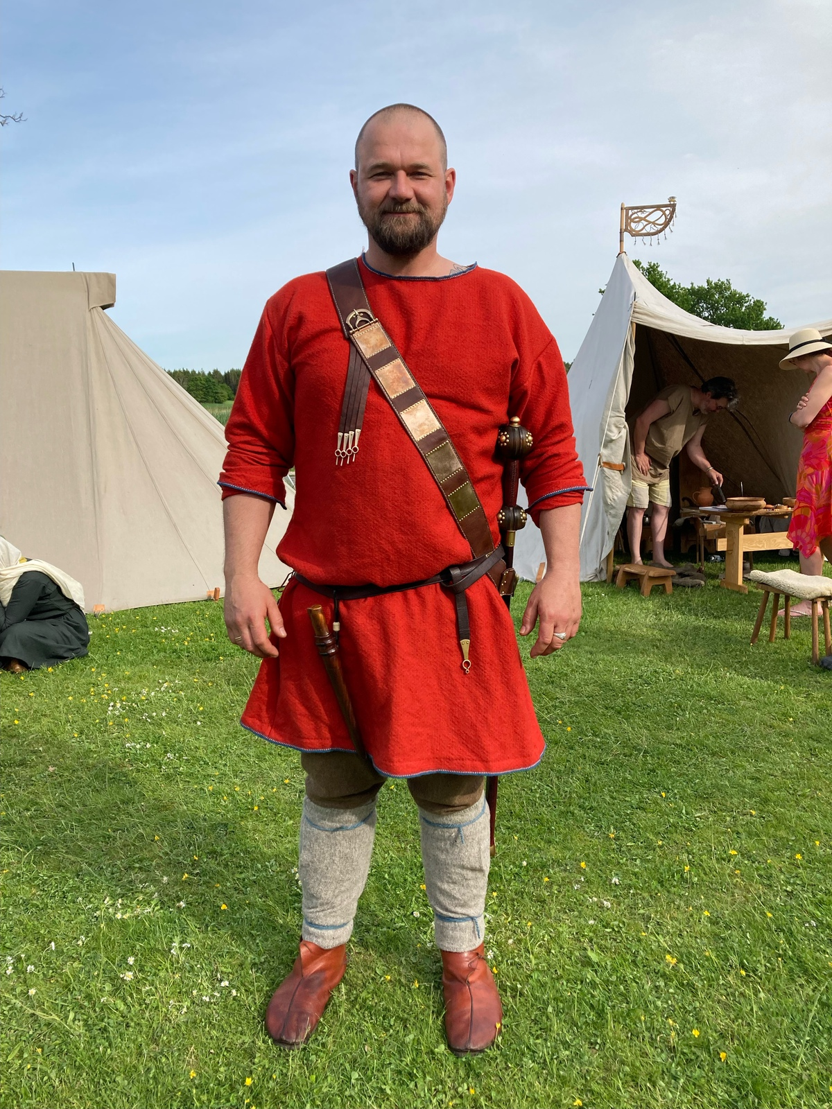 Meet Henrik, our expert carpenter. When he's not expanding our workspace, he's the go-to for finishing knives and crafting leather pouches. Off-duty, Henrik swaps his overalls for a Viking costume, dedicating his free time to his passion for craftsmanship and reconstructing Iron Age and Viking artifacts. From wooden spoons and bronze casting to leather bags, Henrik seamlessly blends the past with the present.