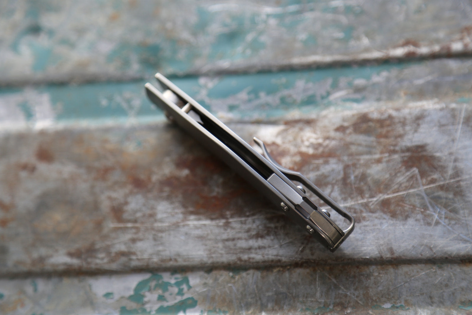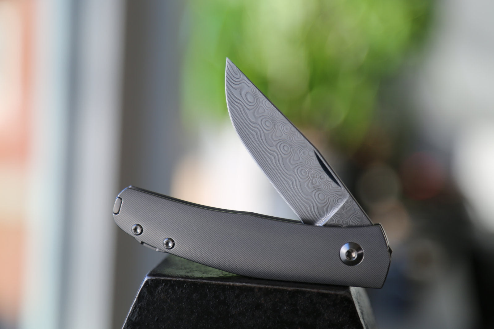 This Casino is made with a nice texture on the grey titanium handle. The blade is made from Damasteel. Clip, spacer are grey titanium and screws are satin.