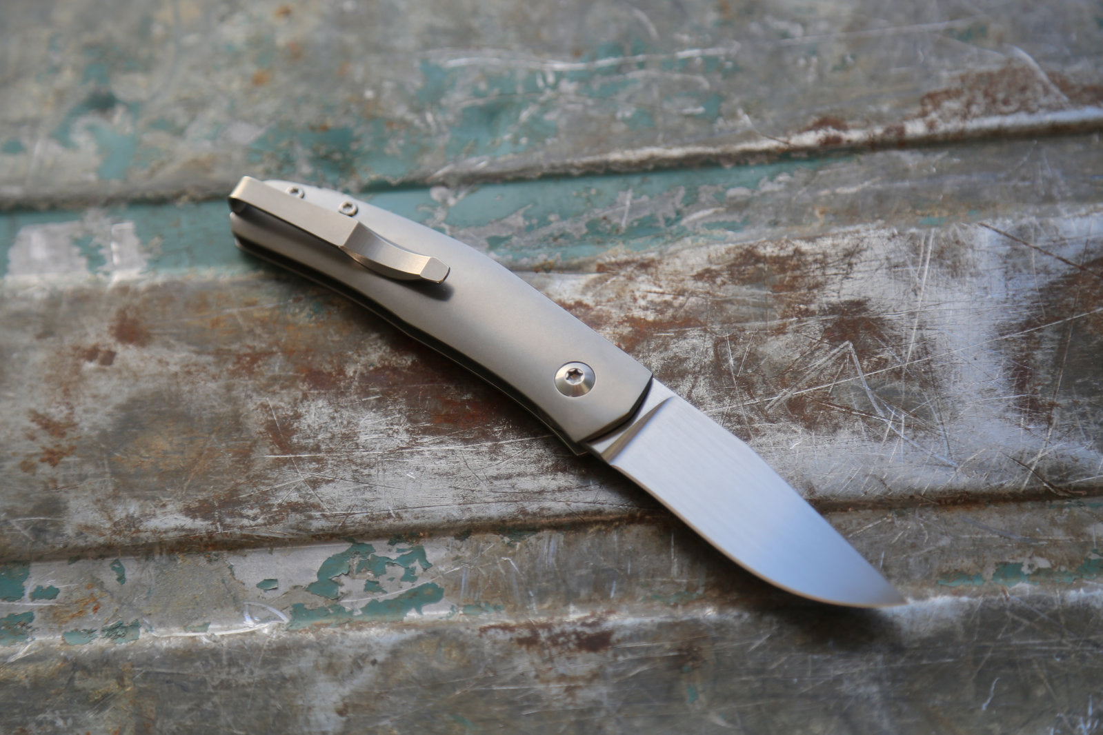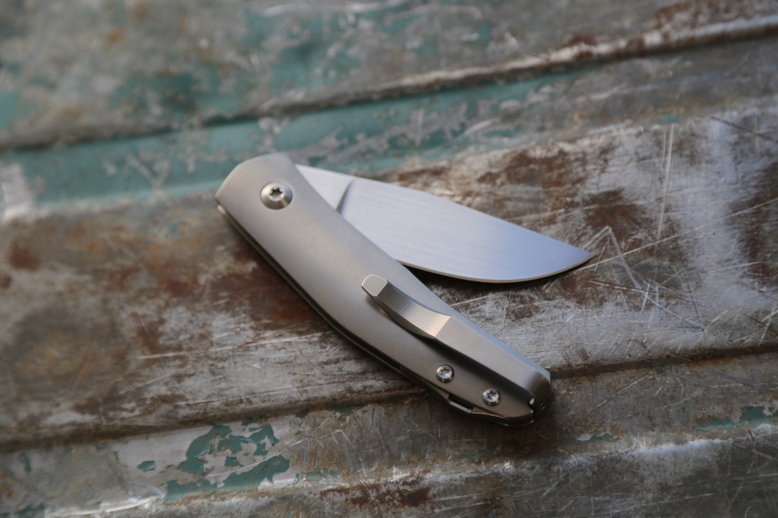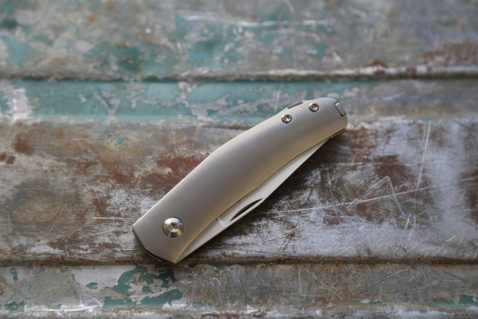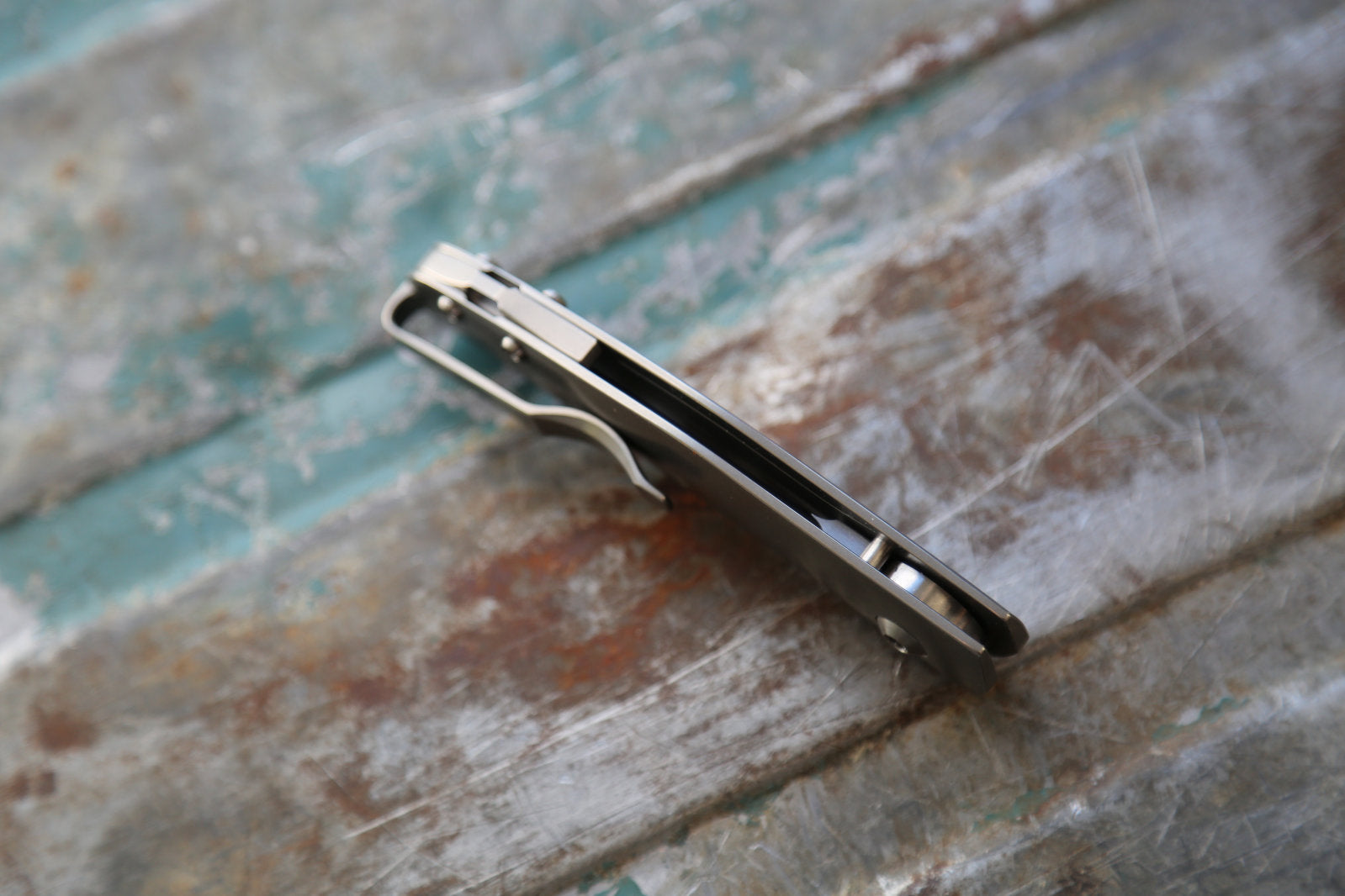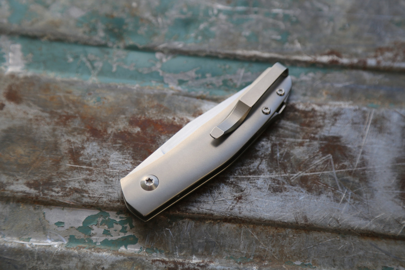This Casino is made with a nice smooth surface on the grey titanium handle. The blade is made from RWL34. Clip, spacer are also grey and screws are satin.