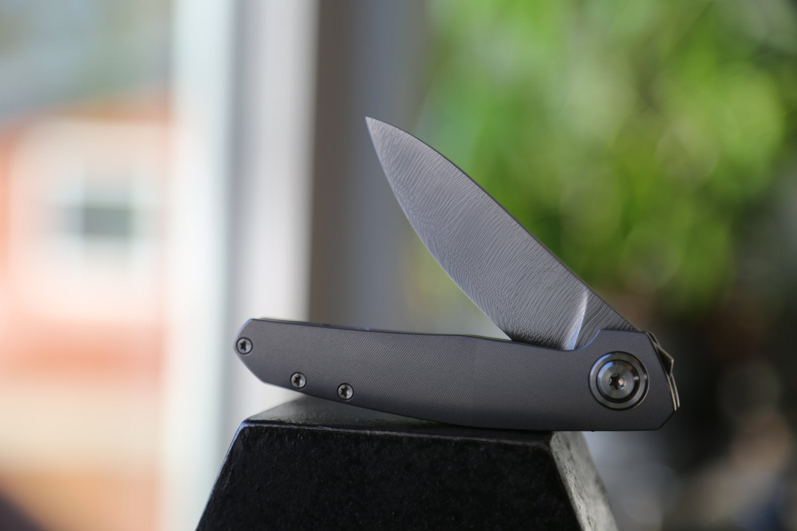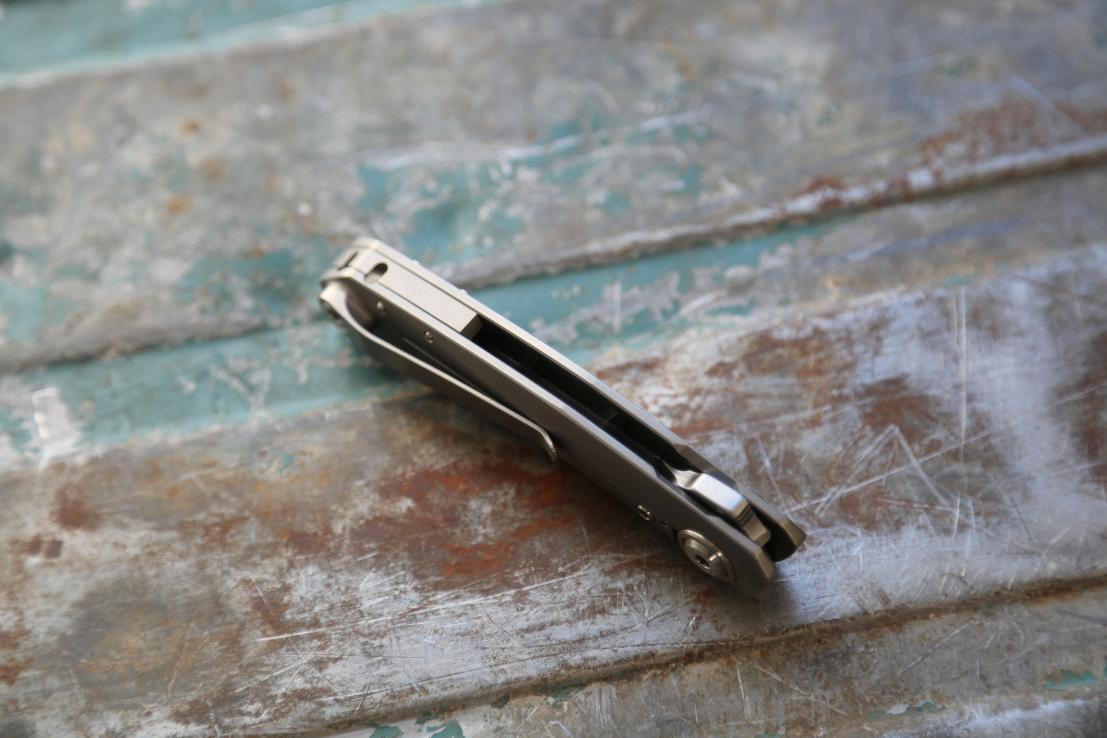 This particular Isola is set up with a satin finished RWL34 blade, a grey titanium frame, spacer and clip and satin screws