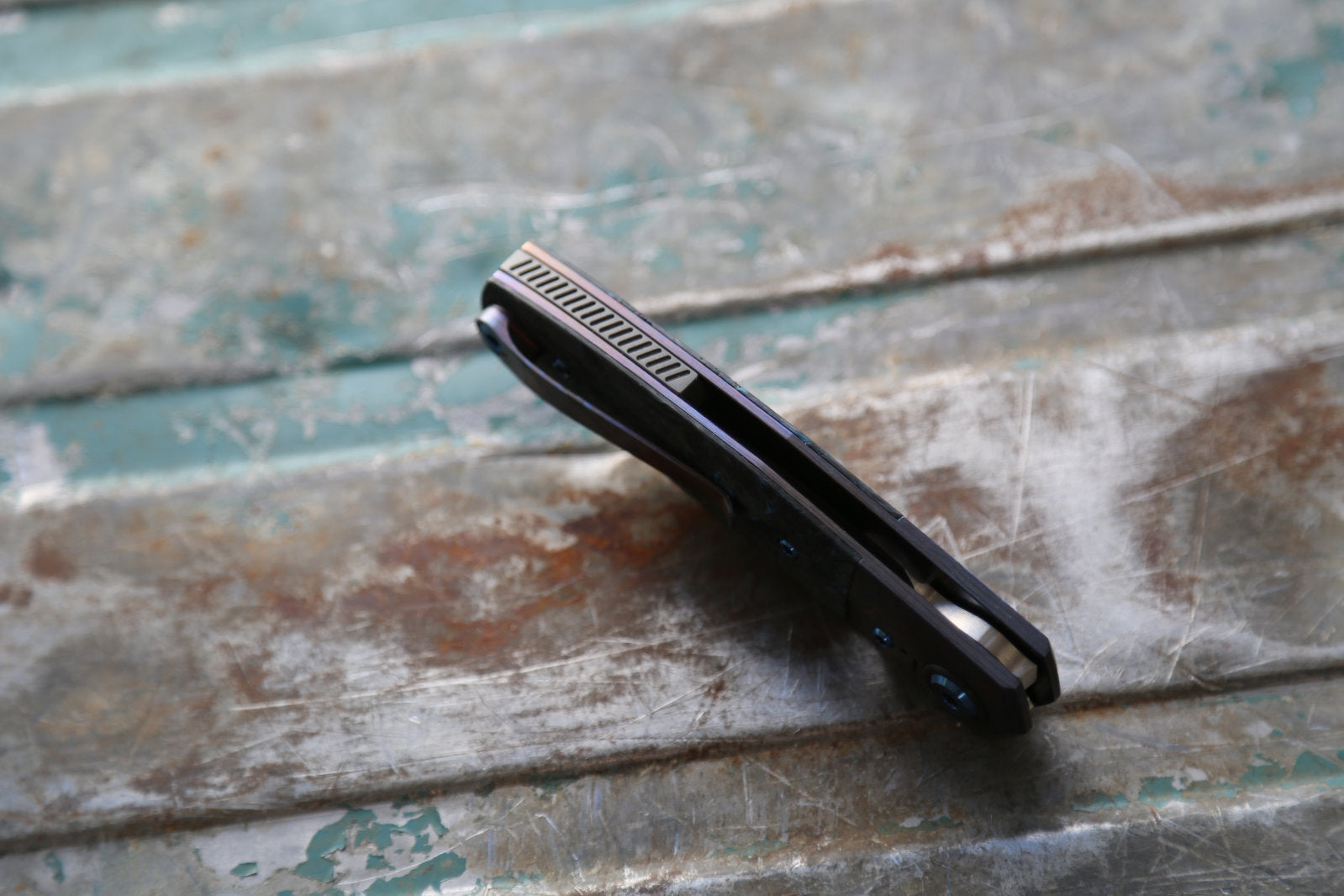 The lock has a hardened steel lock insert. The handle/spacer feartures one of my unique lanyard holes that only pierce one handle side and exits in the end of the spacer. The lanyard “tube” is integral to the liner, milled out of a solid chunk titanium. The clip is my now signature 3D milled and bent clip. The blade is full flat ground.