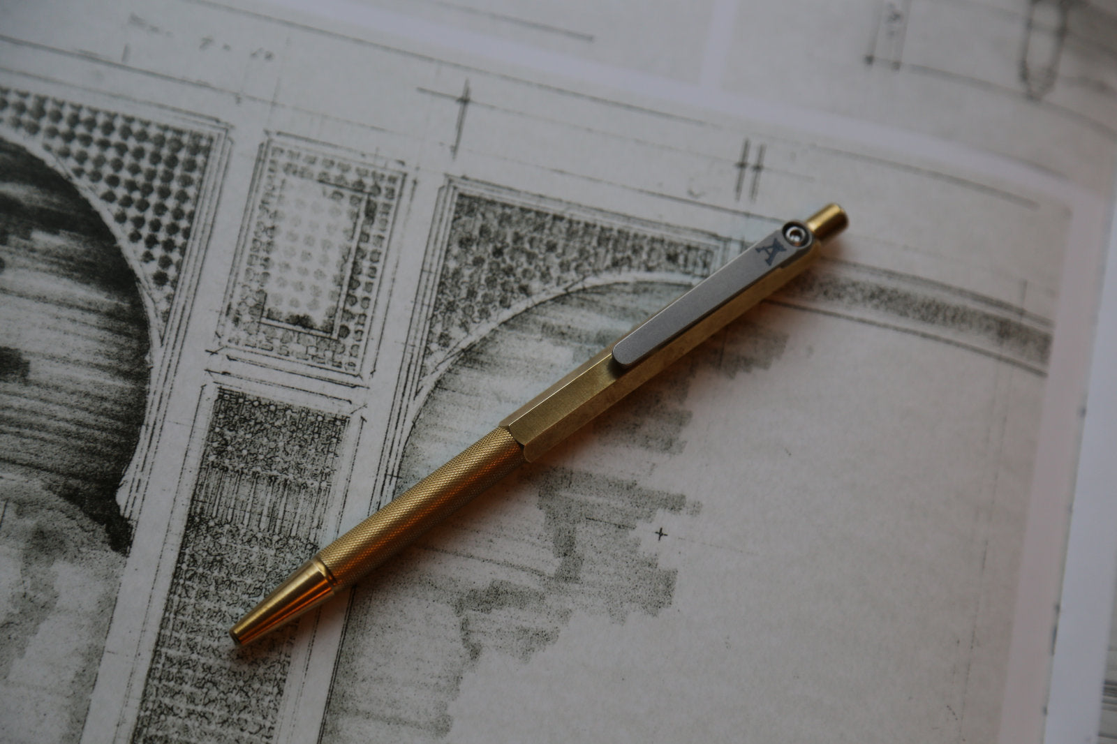 The Pen is machined in solid metal, slim in profile, and made for sketching, journaling, and everyday notes.