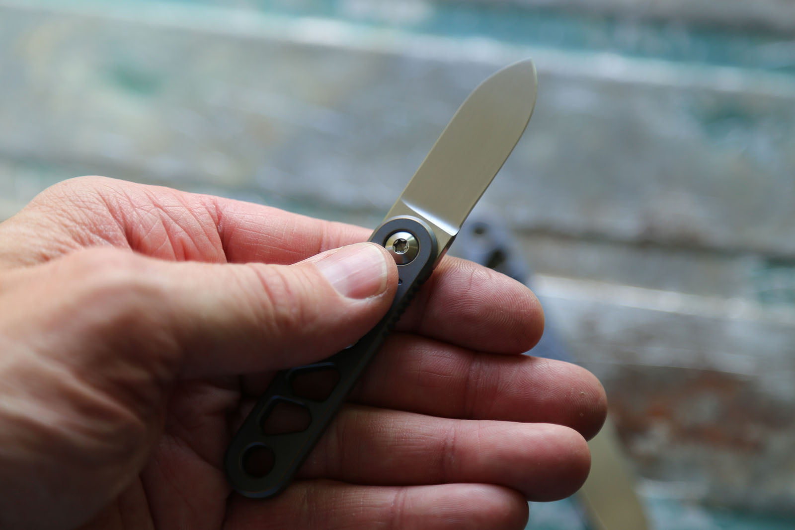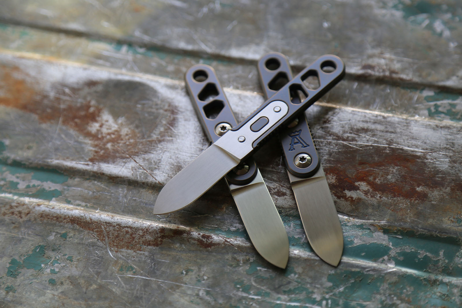 This specially picked version is with the handle pattern called the Nova short in 6Al4V titanium handle in my custom KOBOLT color. The blade is Spearpoint shaped and is a great utilitarian choice. This particular packge is a shorter version than the “standard” version.