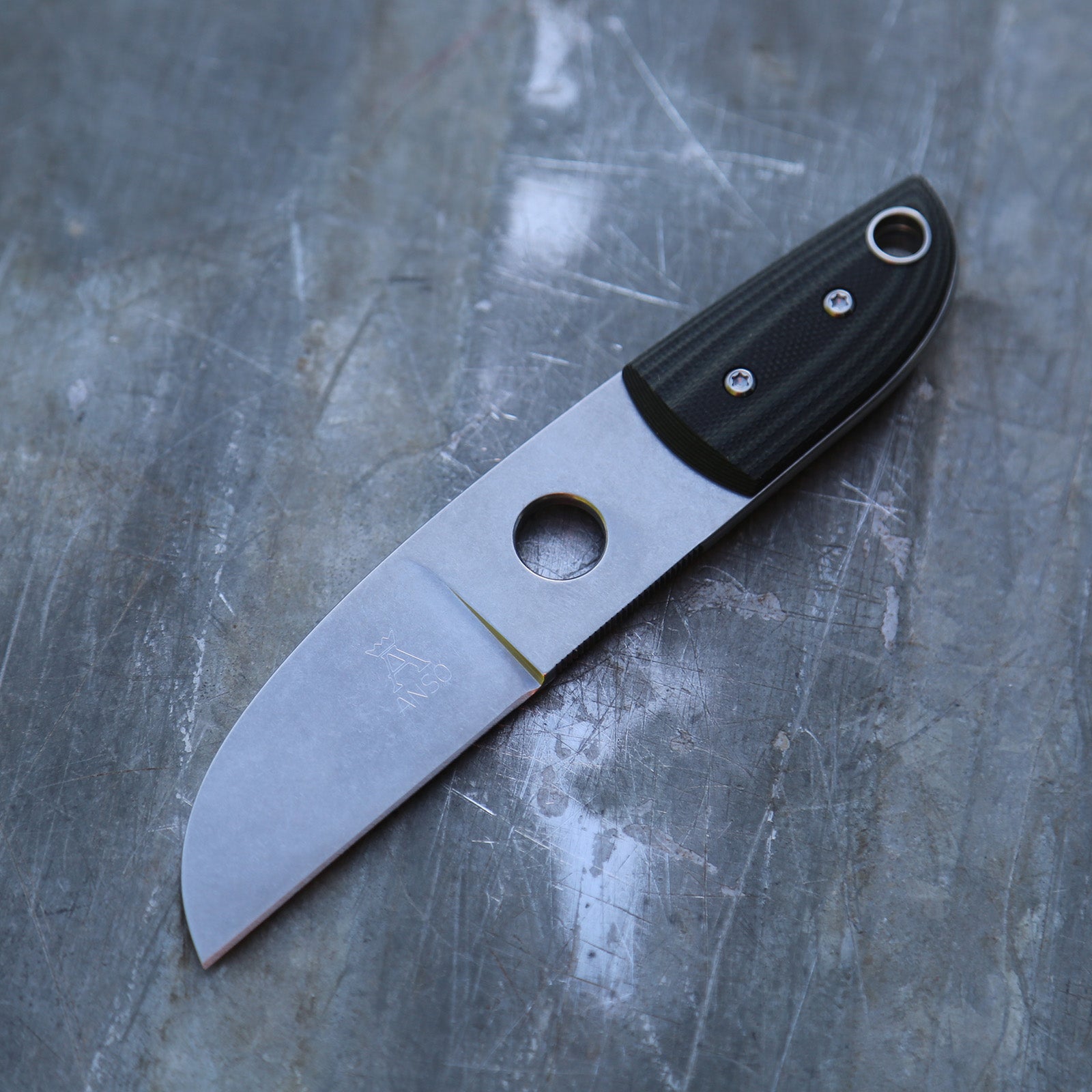 The Anso Sheepsfoot knife. This extraordinary blade is a testament to meticulous craftsmanship and unrivaled functionality. Handcrafted with precision and attention to detail, this knife is designed to exceed your expectations in every way.