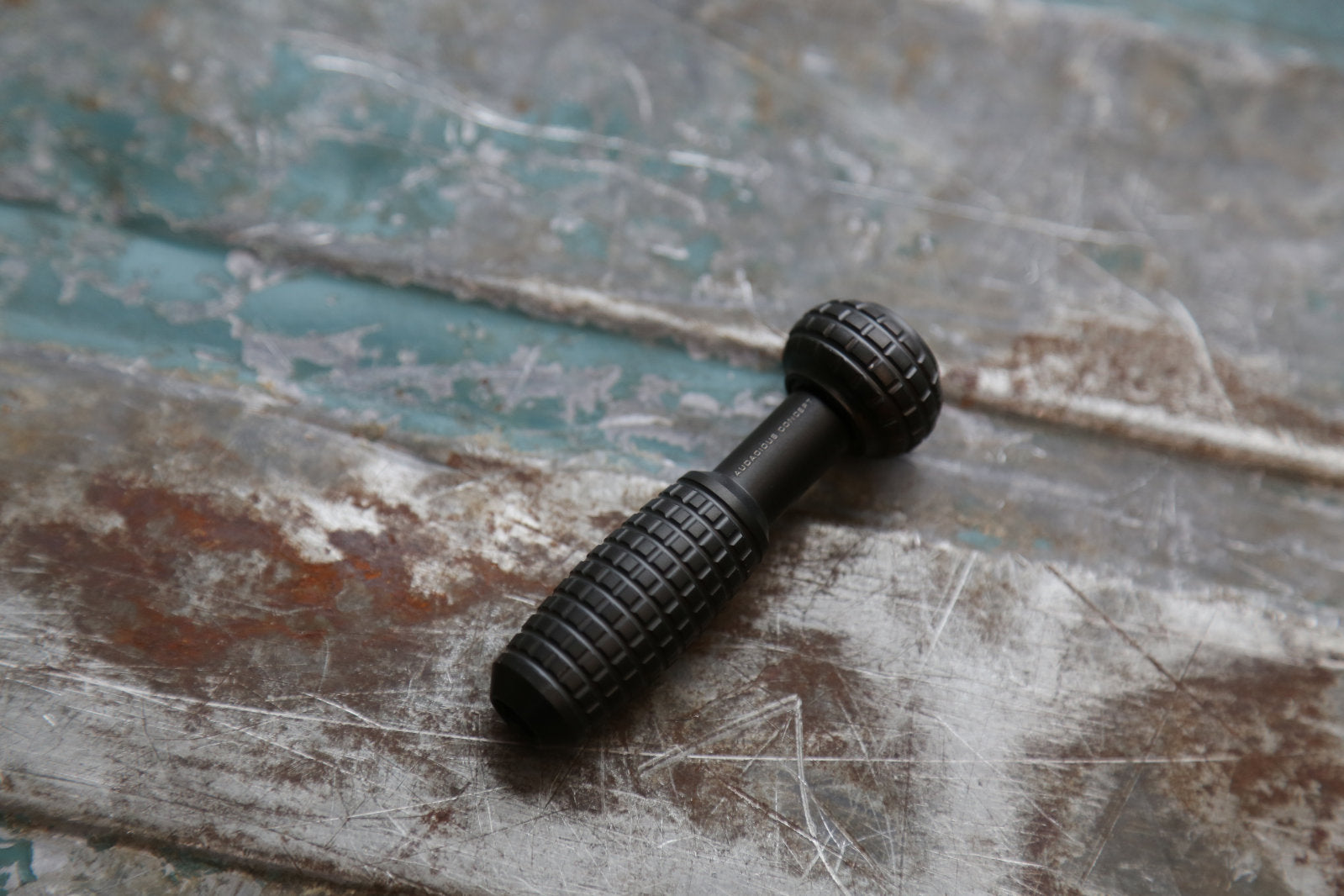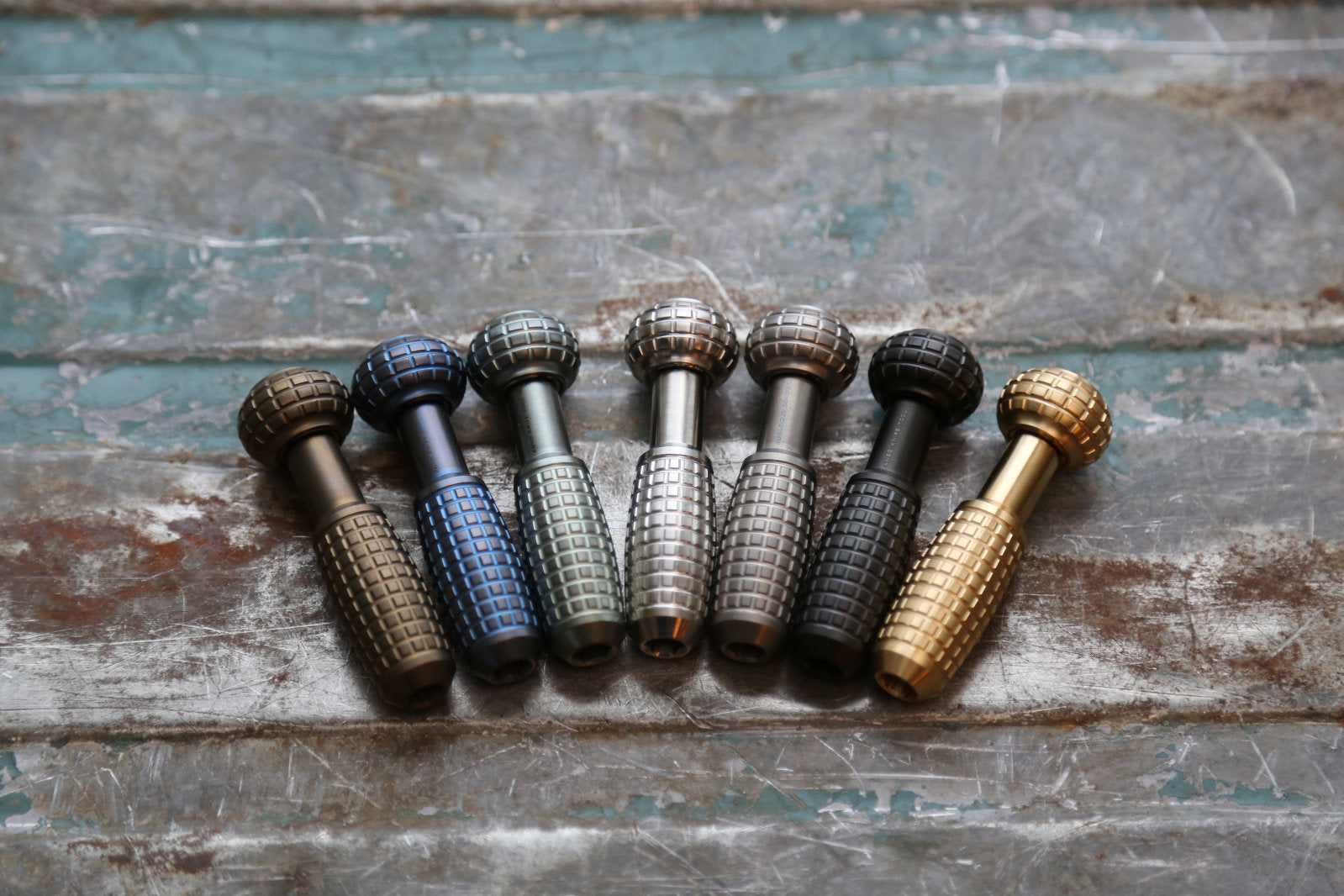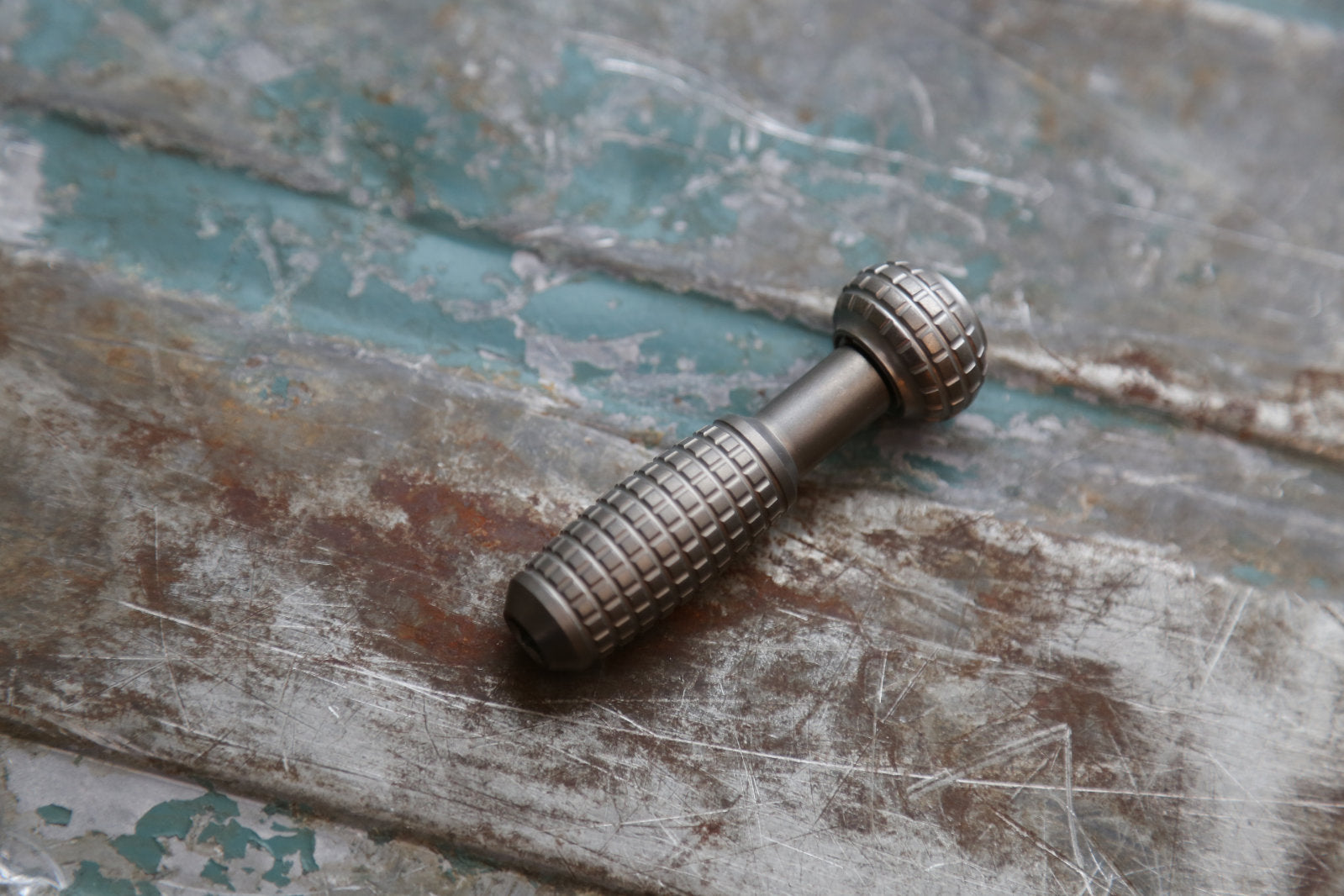Made from textured titanium (or brass for that variation), it has a both secure and comfortable grip, that allows for both precision and torque. The spinning head sits on two precision bearings and rests well in the palm of your hand but also offers you to position your index finger tip for precision work. I have used spinning drivers for years in my shop for putting my knives together and these drivers are designed with this knowledge in mind. I designed this great little tool for Audcious Concepts in Finland, who had them made. I customized the CUPRUM and KOBOLT versions.