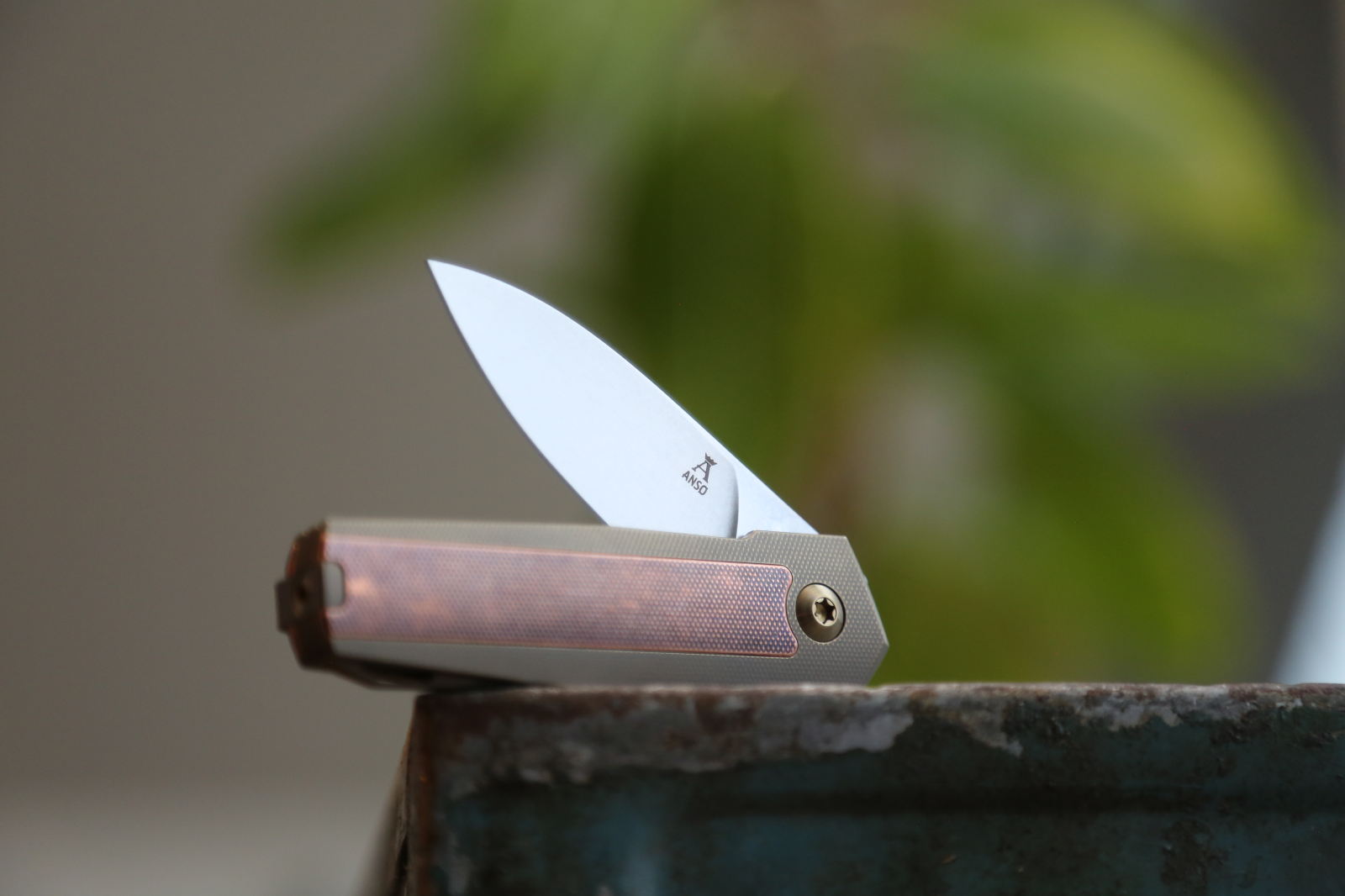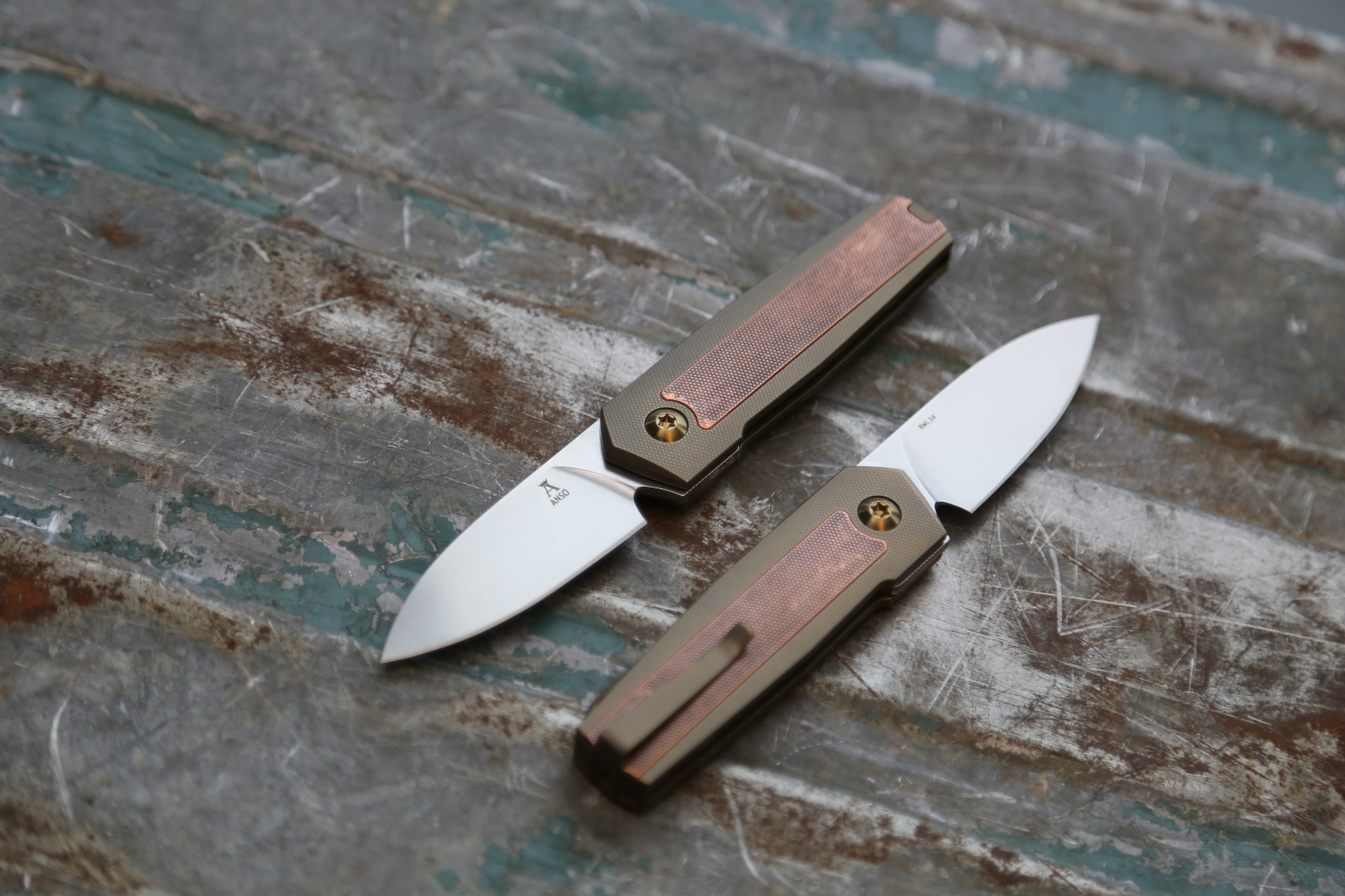 This particular version has COPPER inlay in an AMBER anodized frame with amber hardware. 6 available in this configuration.