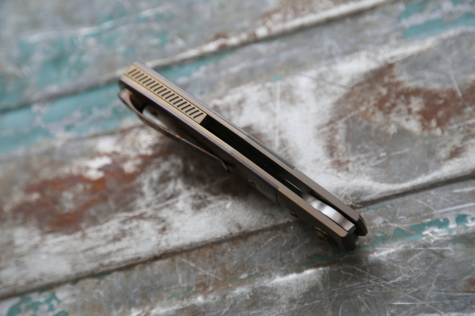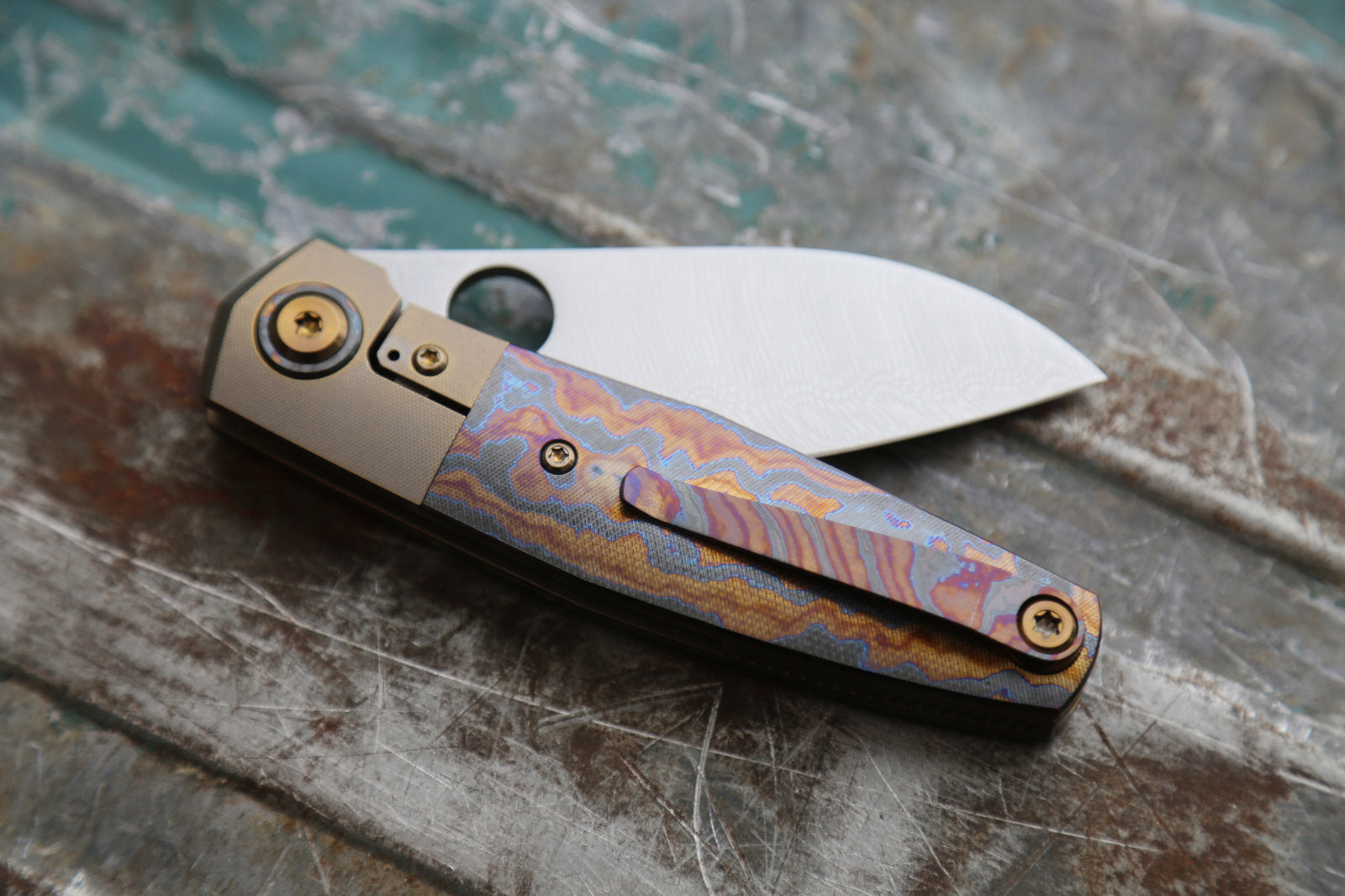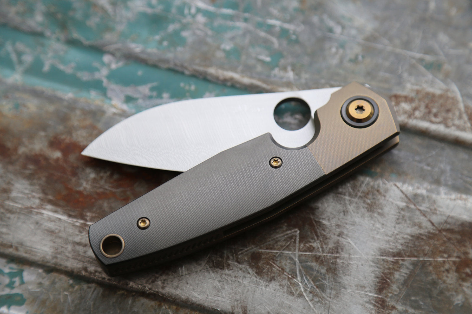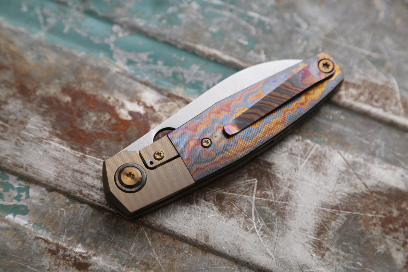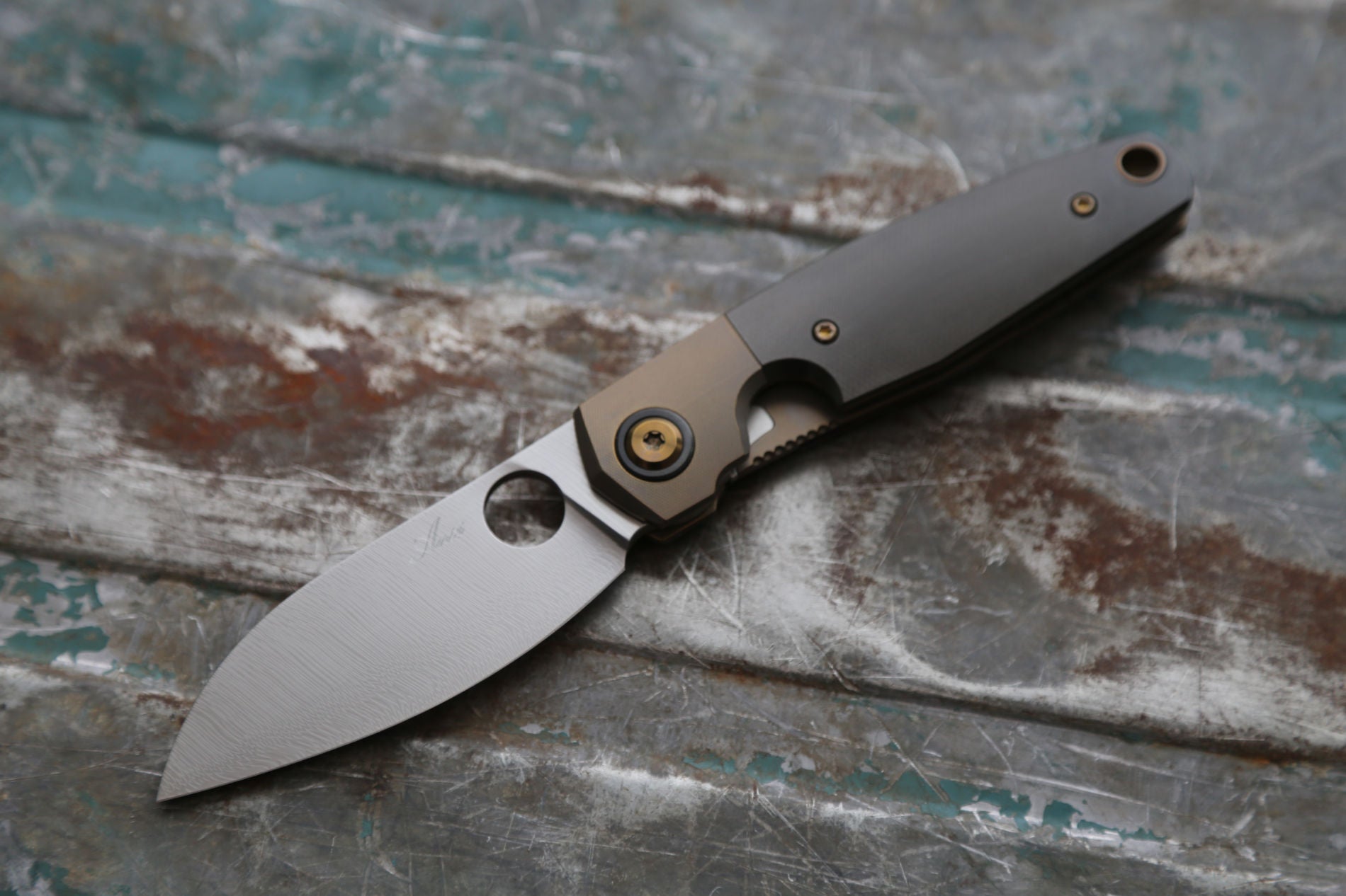 The Sonic features the trademarked Spyderco opening hole that I am licensed to use. The construction is a bolster lock which is the first time ever that I use this mechanism. The lock has a hardened steel lock insert. The handle/spacer feartures one of my unique lanyard holes that only pierce one handle side and exits in the end of the spacer. The lanyard “tube” is integral to the liner, milled out of a solid chunk titanium. The clip is my now signature 3D milled and bent clip. The blade is full flat ground.