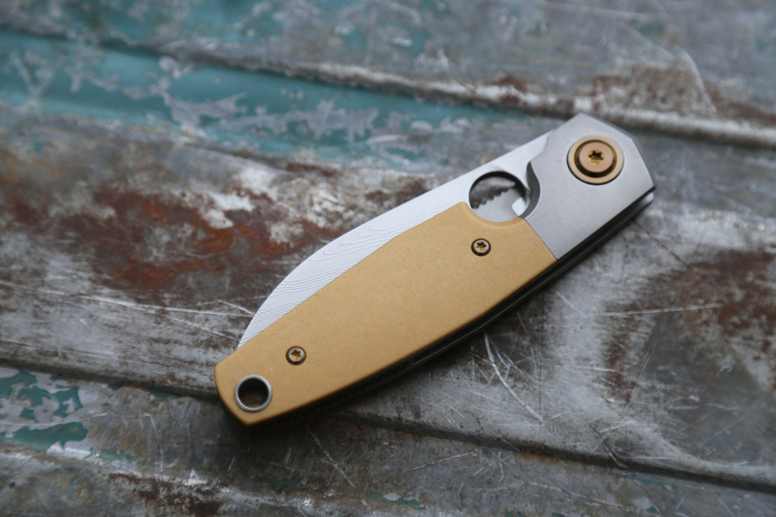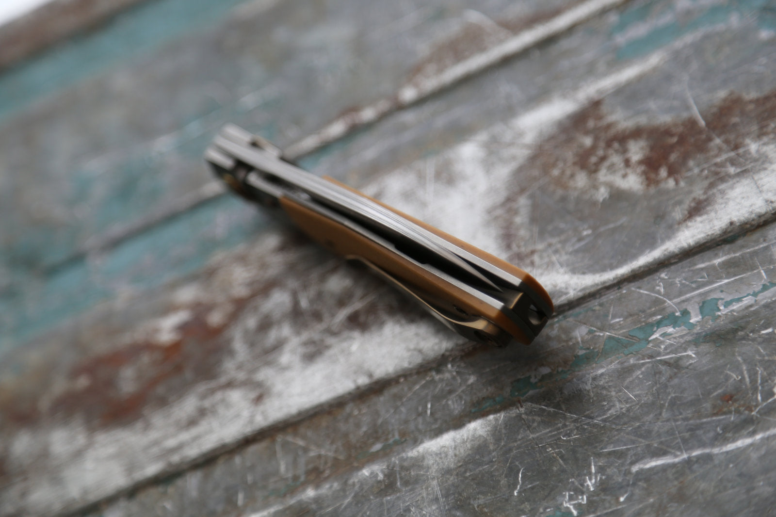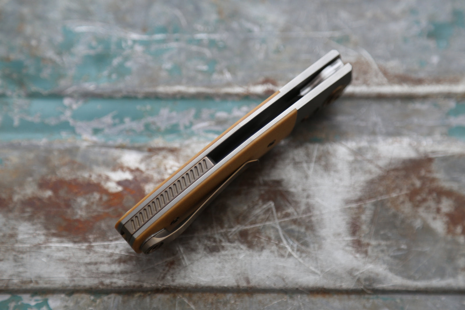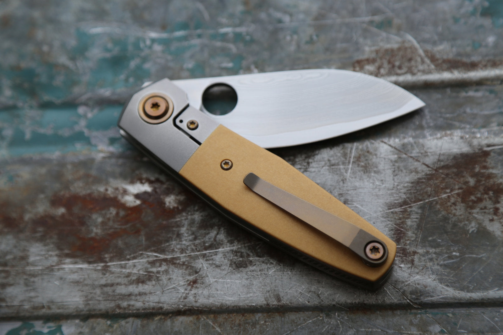 The Sonic features the trademarked Spyderco opening hole that I am licensed to use. The construction is a bolster lock which is the first time ever that I use this mechanism. The lock has a hardened steel lock insert. The handle/spacer feartures one of my unique lanyard holes that only pierce one handle side and exits in the end of the spacer. The lanyard “tube” is integral to the liner, milled out of a solid chunk titanium. The clip is my now signature 3D milled and bent clip. The blade is full flat ground.